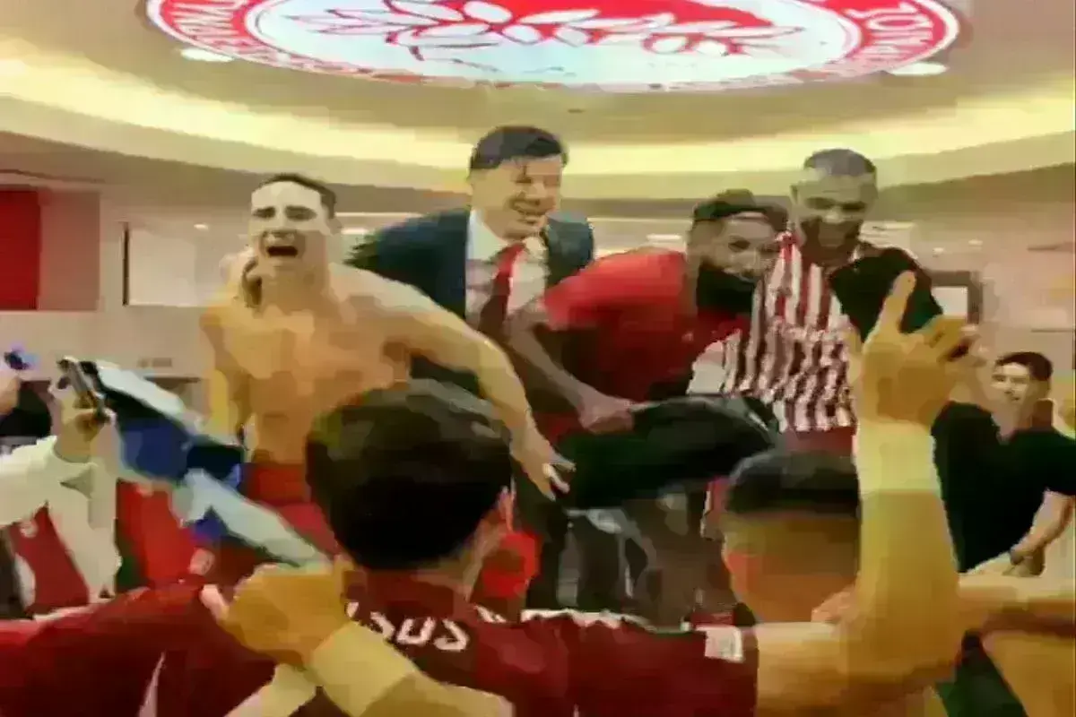 Επίσης έγινε ένα χαμός από τους πανηγυρισμούς των ερυθρόλευκων με τραγούδια, χορούς και συνθήματα ακόμα και πάνω στους πάγκους αλλά και στα τραπέζια.