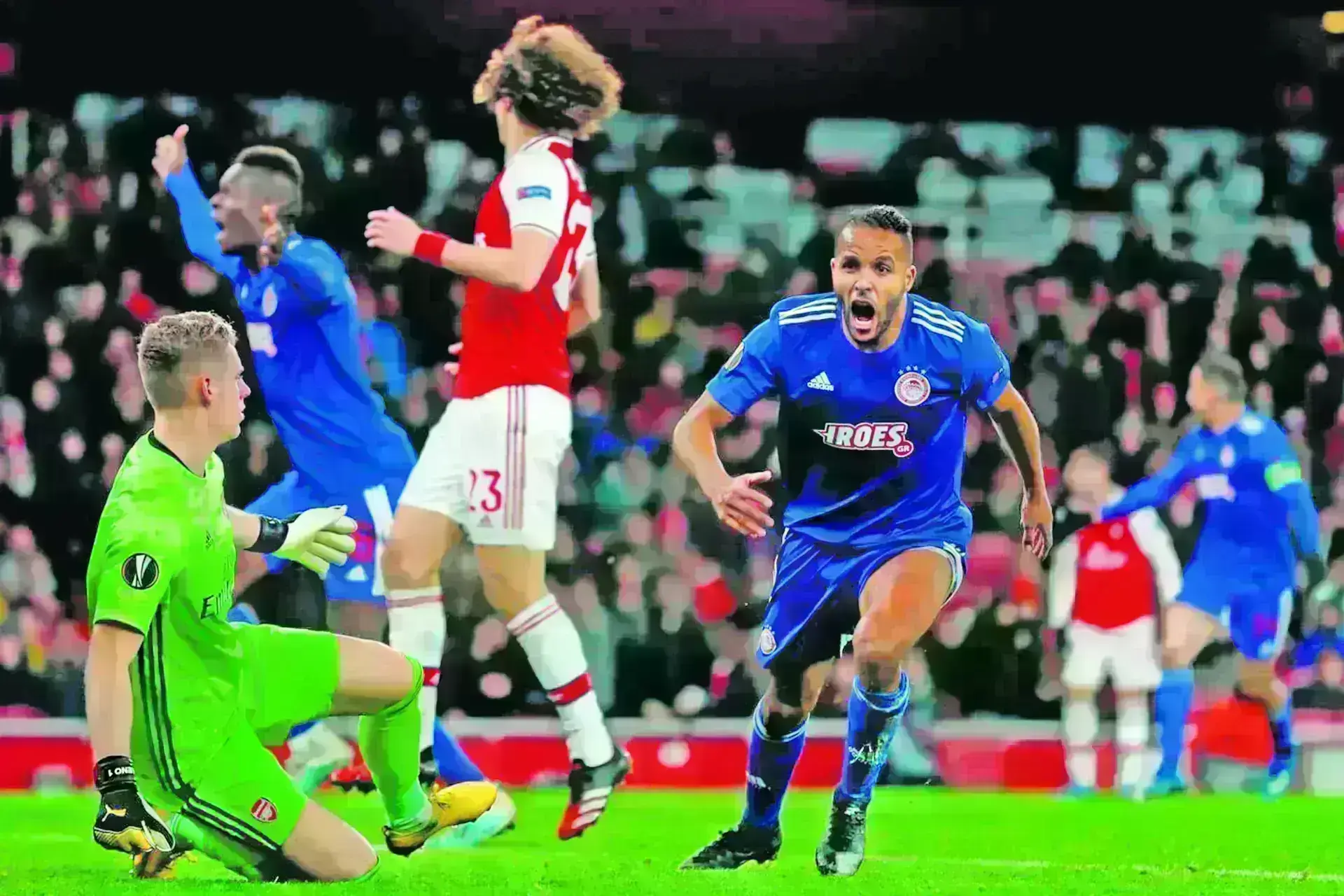 27/2/2020 ● ΑΡΣΕΝΑΛ-ΟΛΥΜΠΙΑΚΟΣ 1-2 παρ. (0-1 κ.α.): Πρόκειται για τη σπουδαία βραδιά του Ολυμπιακού που με γκολ του Ελ Αραμπί στο τελευταίο λεπτό της παράτασης έριξε στο… καναβάτσο την Αρσεναλ μέσα στο Λονδίνο. Οι «κανονιέρηδες» είχαν νικήσει στο πρώτο παιχνίδι για τη φάση των «32» του Γιουρόπα με 1-0 στο «Καραϊσκάκης». Κι όμως. Ο Ολυμπιακός διέψευσε τα προγνωστικά και πανηγύρισε μία σπουδαία πρόκριση. Νίκησε με 1-0 στην κανονική διάρκεια του ματς χάρη σε γκολ του Σισέ και στην παράταση, όχι μόνο άντεξε στην πίεση της Αρσεναλ που ισοφάρισε, αλλά πέτυχε και δεύτερο γκολ. Ο Ελ Αραμπί πρόλαβε τους αμυντικούς της Αρσεναλ, μεταξύ των οποίων ήταν και ο Παπασταθόπουλος, και με το 1-2 έστειλε την ομάδα του στην επόμενη φάση.