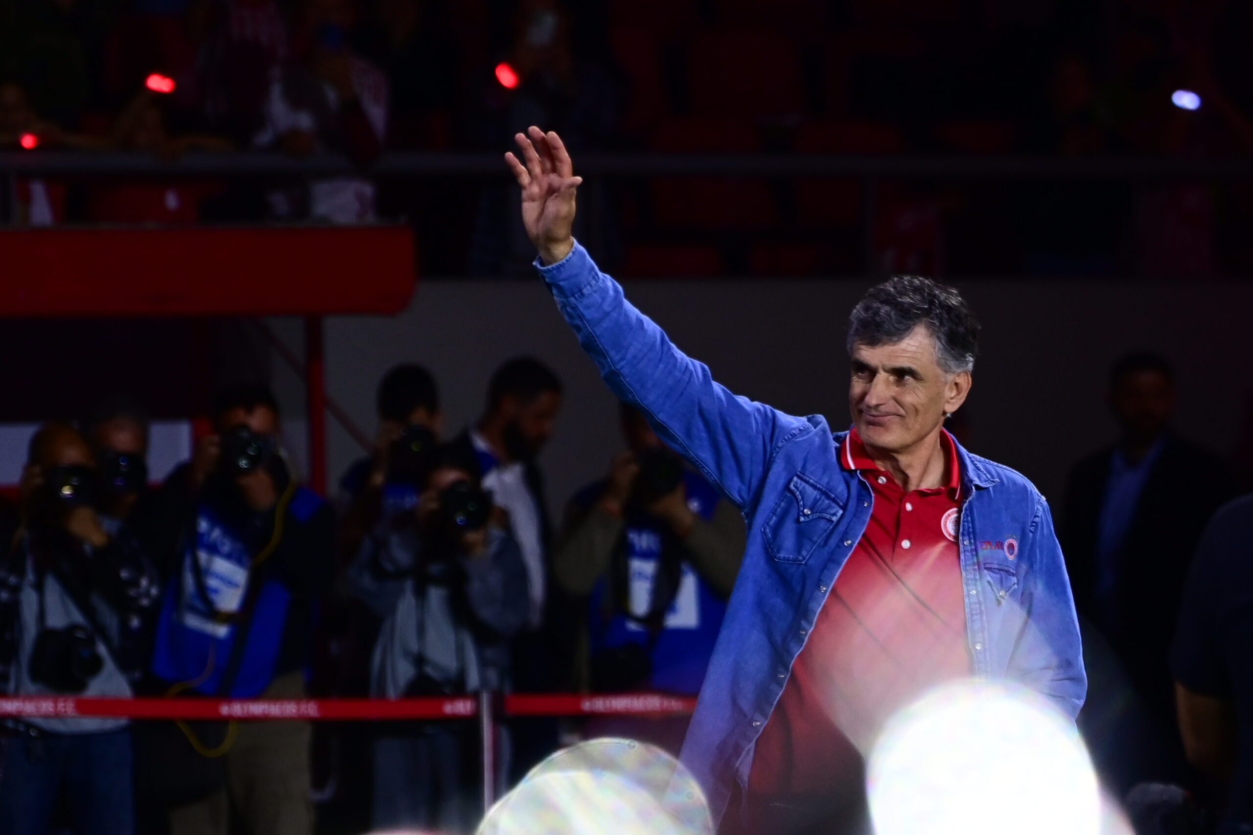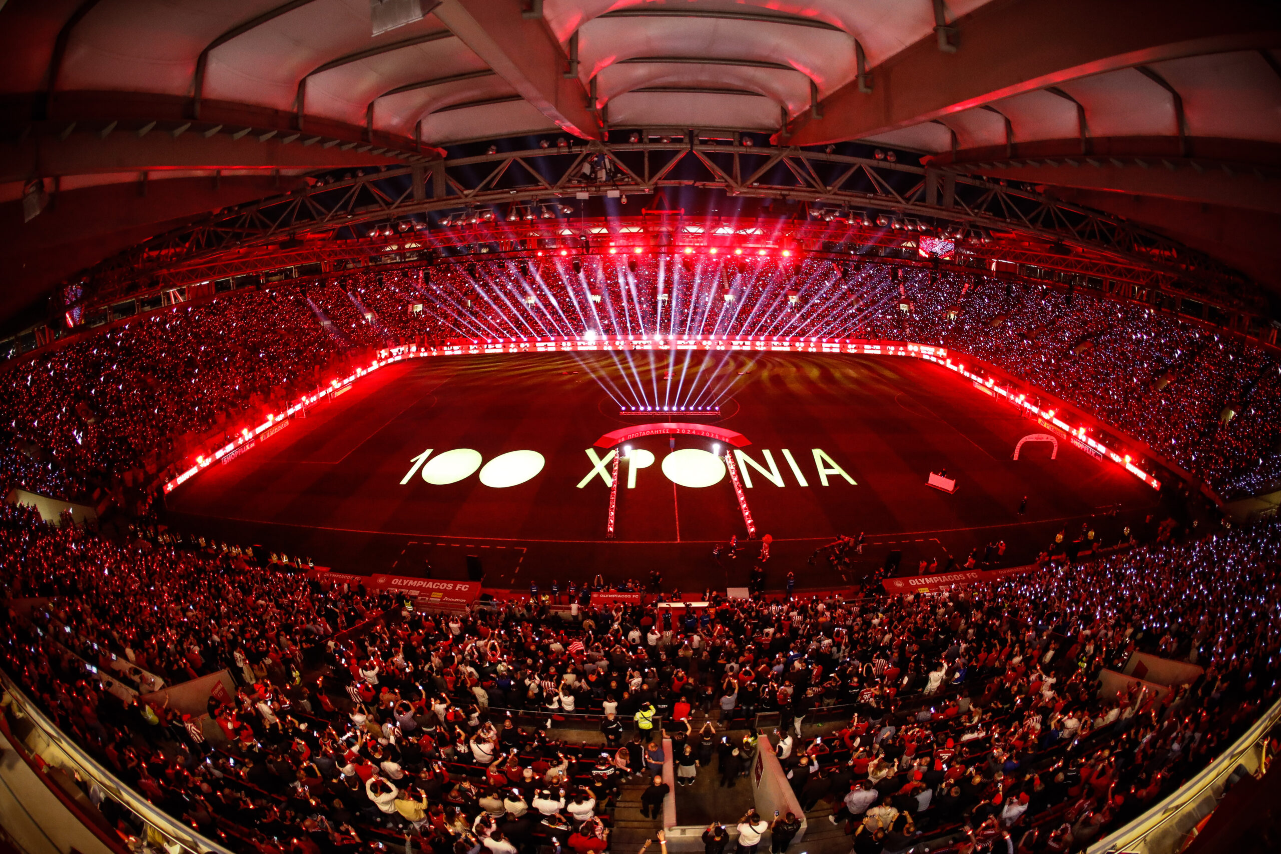 Φαντασμαγορική η ατμόσφαιρα στο Γεώργιος Καραϊσκάκης με την εξέδρα να κοκκινίζει… με τα κόκκινα βραχιολάκια που φορούν οι φίλαθλοι και με όλα τα τρόπαια της ομάδας παραταγμένα. Αποθεώθηκε ο πρόεδρος του Ολυμπιακού, Βαγγέλης Μαρινάκης όταν απευθύνθηκε στον κόσμο: «Τους τελευταίους σχεδόν 12 μήνες ζήσαμε σπουδαίες στιγμές. Κερδίσαμε 2 ευρωπαϊκά. Και στα 100 χρόνια πανηγυρίσαμε και πάλι το πρωτάθλημα. Δεν σταματάμε εδώ, συνεχίζουμε να κατακτάμε νέες κορυφές».