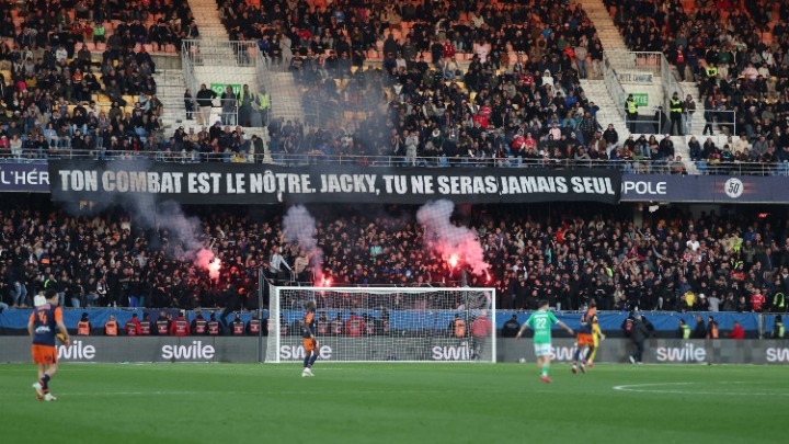 Αμέσως μετά το 0-2 απ’ τον Στασίν οι οπαδοί της Μονπελιέ άρχισαν να ανάβουν καπνογόνα και τα να πετούν στον αγωνιστικό χώρο, σε ένδειξη… διαμαρτυρίας για τη διαφαινόμενη ήττα της ομάδας τους και τον επερχόμενο υποβιβασμό (βρίσκεται εδώ και καιρό στην τελευταία θέση).