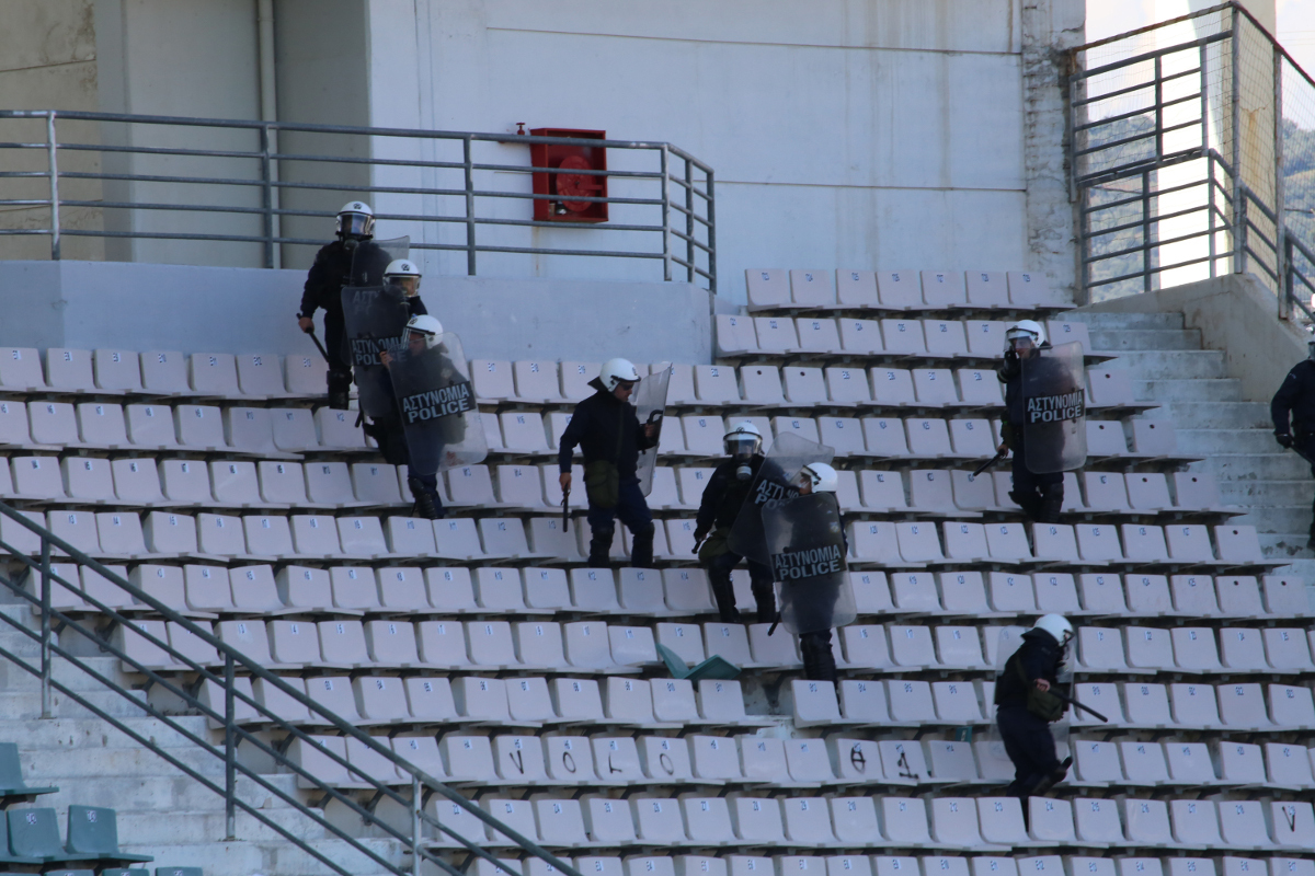 Ο διαιτητής Τσιάρας αποχώρησε για τα αποδυτήρια, όπως και οι ποδοσφαιριστές, και ζήτησε την εκκένωση του γηπέδου, προκειμένου να δώσει συνέχεια στο θεσσαλικό ντέρμπι.