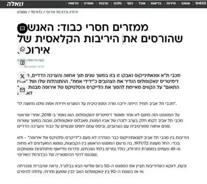 Παναθηναϊκός-Μακάμπι: Όσα αναφέρει στο κείμενο η ιστοσελίδα από το Ισραήλ