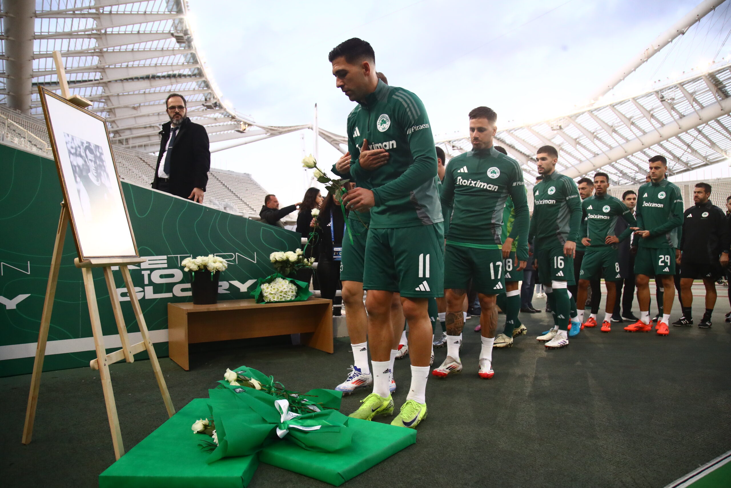 Όλοι οι παίκτες πέρασαν μπροστά απ’ το σημείο για να αποτίσουν φόρο τιμής, ενώ τελευταίοι πέρασαν οι παλαίμαχοι άσοι του Παναθηναϊκού απ’ την ομάδα του Γουέμπλεϊ, που «αποχαιρέτισαν» με τη σειρά τους τον φίλο και συμπαίκτη τους.