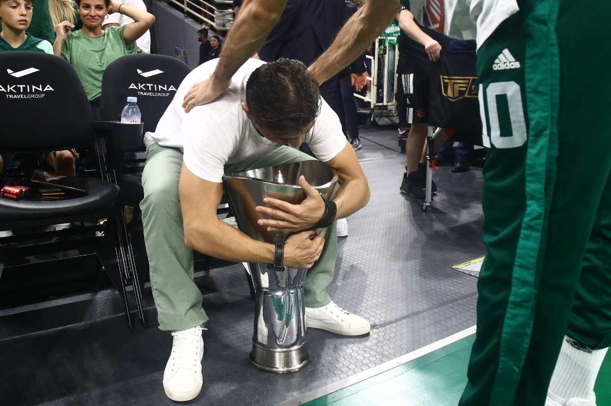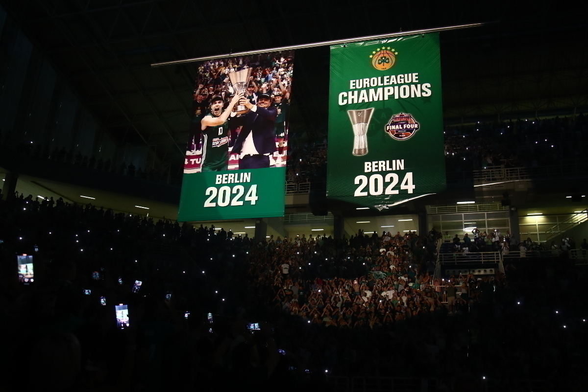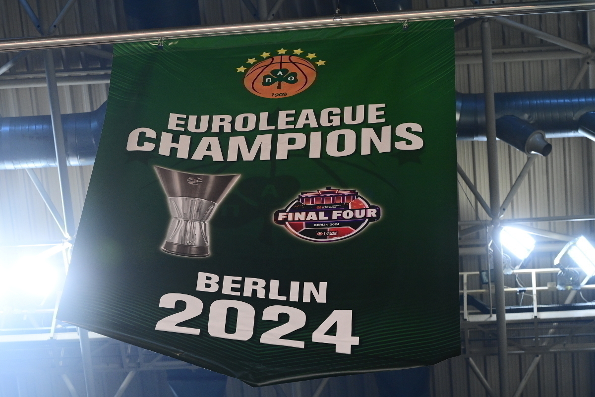 Στη λήξη αυτή της μίνι-τελετής, παρουσιάστηκε το λάβαρο για την έβδομη Euroleague, όπου απεικονίζονται ο ηγέτης του τριφυλλιού, μαζί με τον Τούρκο mastermind, να σηκώνουν το τρόπαιο στην Uber Arena.