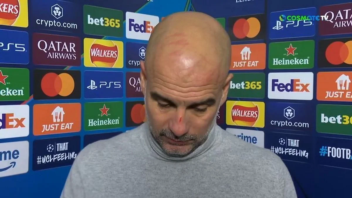 Μετά τον ηρωικό άθλο της Μάντσεστερ Σίτι στο Champions League, όπου ανέκαμψε από το έλλειμμα 3-0 για να εξασφαλίσει μια δραματική ισοπαλία 3-3 στο Etihad Stadium, ο προπονητής της αγγλικής ομάδας Πεπ Γκουαρδιόλα, εμφανίστηκε στη συνέντευξη Τύπου με αισθητές γρατζουνιές στο πρόσωπό του και ένα μικρό κόψιμο στο διάφραγμα.