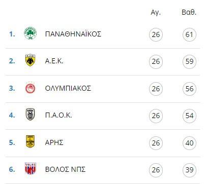 Σούπερ Λίγκα: Η βαθμολογία της κανονικής διάρκειας του πρωταθλήματος