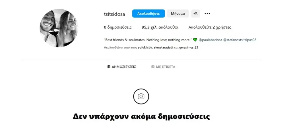 Εύλογο λοιπόν είναι το ερώτημα του τι συνέβη και εξαφανίστηκαν όλες οι κοινές τους φωτογραφίες από το προφίλ που έχουν δημιουργήσει στο Instagram. Οι Tsitsidosa όπως είναι το όνομα του λογαριασμού που έχουν δημιουργήσει μαζί, πλέον έχει σιγήσει και δεν υπάρχει ούτε μία κοινή φωτογραφία τους.