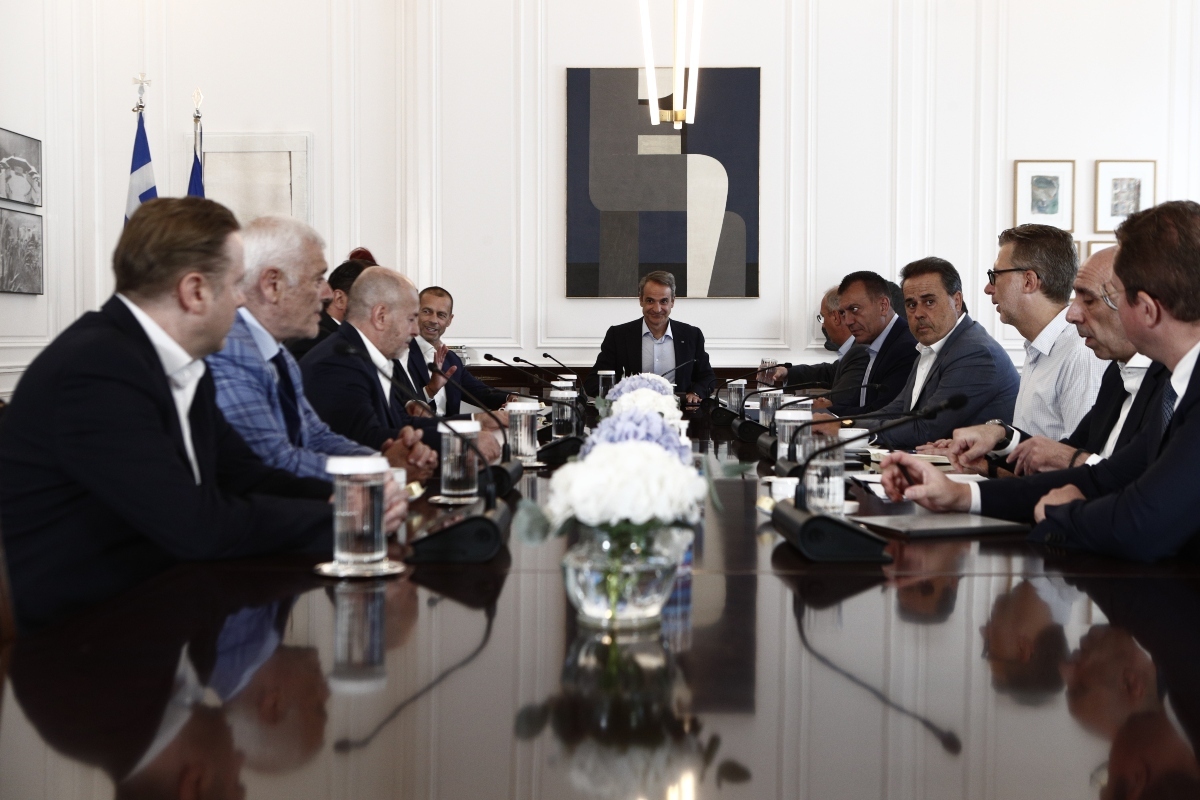 Η οπαδική βία μετά και τα τελευταία τραγικά γεγονότα στη Νέα Φιλαδέλφεια μπαίνει στο επίκεντρο της συνάντησης του πρωθυπουργού, Κυριάκου Μητσοτάκη, με τον πρόεδρο της UEFA, Αλεξάντερ Τσέφεριν, ο οποίος έφτασε στο Μέγαρο Μαξίμου λίγα λεπτά πριν από τις 10:30.