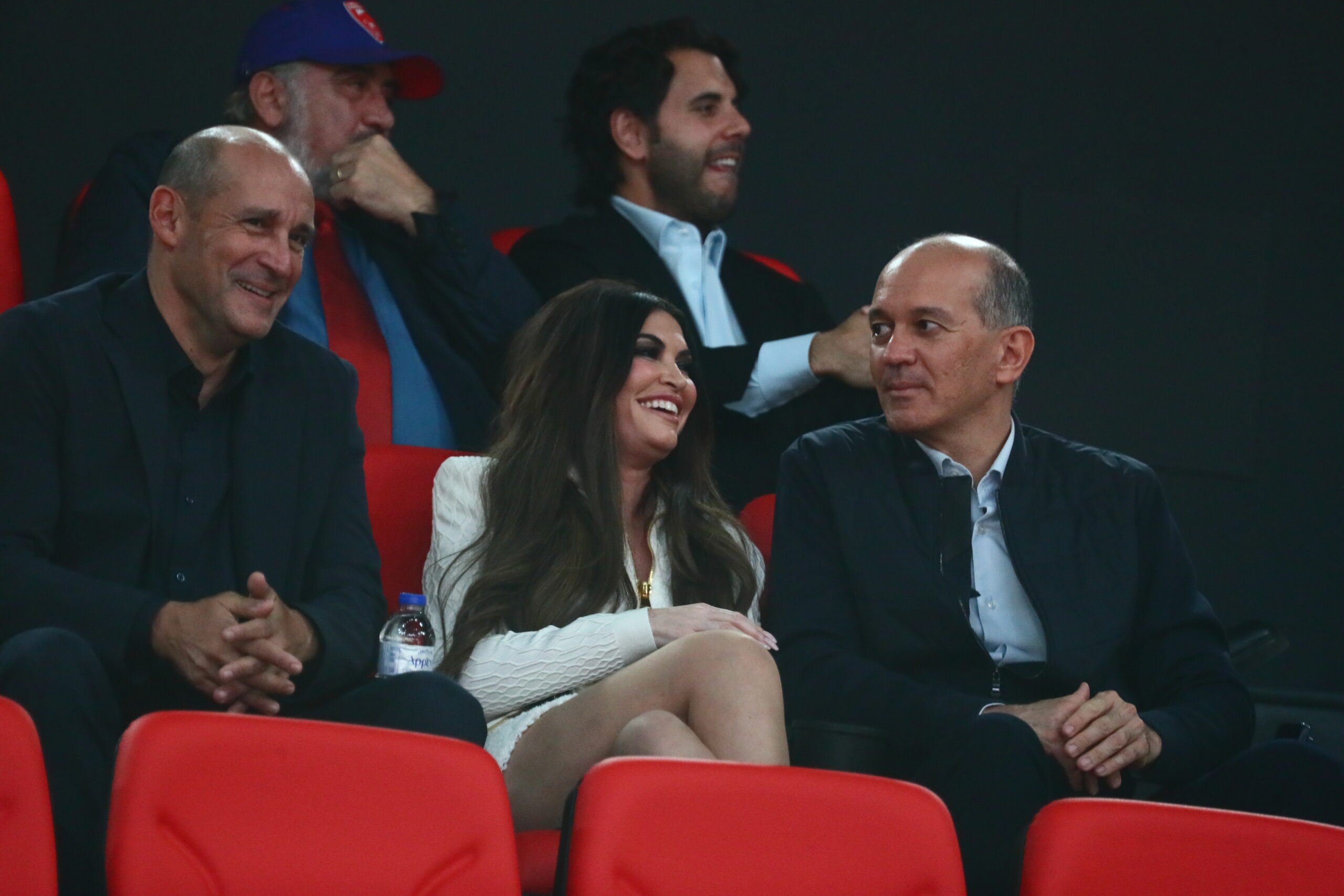Η Αμερικανίδα διπλωμάτης φωτογραφήθηκε στις εξεδρες των επισήμων, καθήμενη ανάμεσα στους ιδιοκτήτες της ΚΑΕ Ολυμπιακός, Παναγιώτη και Γιώργο Αγγελόπουλο.
