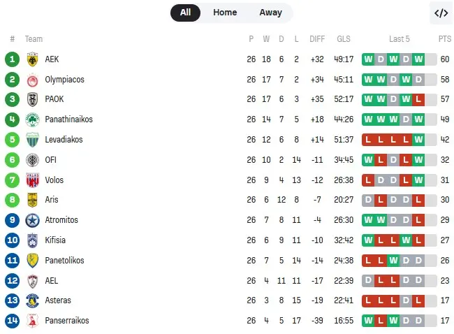 Παράλληλα, ξεκαθάρισε και το ενδιάμεσο κομμάτι της βαθμολογίας, με τις τέσσερις ομάδες που θα παίξουν στα playoffs 5-8 να είναι ο Λεβαδειακός, ο ΟΦΗ, ο Βόλος και ο Άρης.
