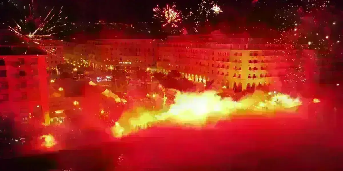 Αμέσως μετά τη βράβευση των ομάδων μπάσκετ και ποδοσφαίρου και την «λαϊκή απαίτηση» για κατάκτηση του κυπέλλου Ελλάδας στον τελικό της 18ης Μαΐου στο Πανθεσσαλικό, οι φίλοι των «κιτρινόμαυρων» έκαναν την νύχτα – μέρα στην Πλατεία Αριστοτέλους ανάβοντας εκατοντάδες πυρσούς.