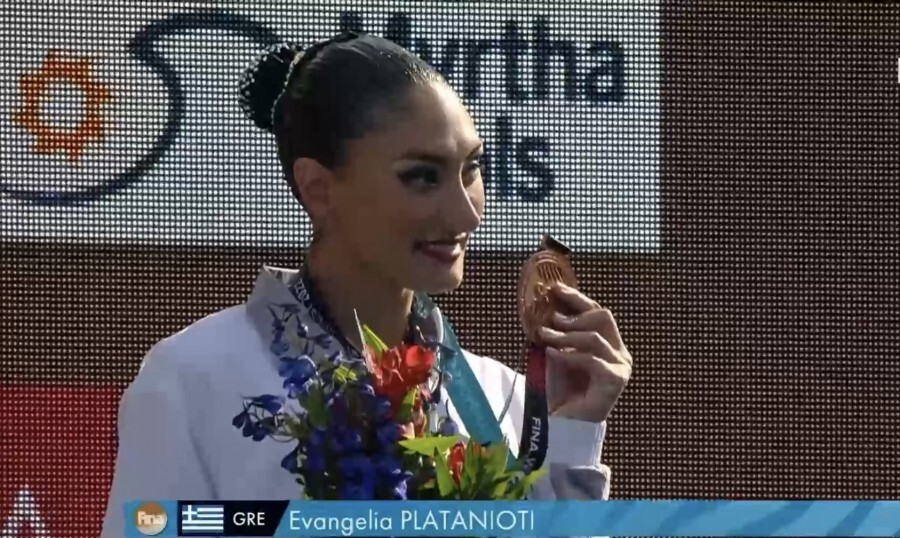 Εντυπωσιακή και στον Τελικό του Ελεύθερου Σόλο η θεσπέσια Ευαγγελία της Ελλάδας, το απόγευμα της Τετάρτης (22/6), εκτέλεσε υπέροχα το πρόγραμμά της με θέμα χορογραφίας “Φρέντι Μέρκιουρι” και μουσική το κομμάτι “So must go on”” των Queen. Βαθμολογήθηκε με το τεράστιο σύνολο 91,7667 βαθμών και κατέκτησε το χάλκινο μετάλλιο στο αγώνισμα, στο 19ο Παγκόσμιο πρωτάθλημα, στην πισίνα «Szechy» της Βουδαπέστης και κάνει θρυλικό “νταμπλ”. Καθώς είναι το δεύτερο μετάλλιο το οποίο κατακτά η Ελλάδα σε Παγκόσμιο πρωτάθλημα Καλλιτεχνικής (Συγχρονισμένης) Κολύμβησης στην ιστορία, μετά από το δικό της χάλκινο στο Τεχνικό Σόλο.