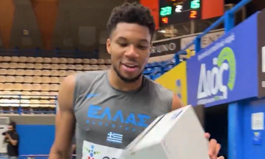 Ο «Greek Freak» έκανε πράξη την υπόσχεσή του και χάρισε από ένα ζευγάρι παπούτσια που φέρει την υπογραφή του, σε κάθε ένα μέλος της «επίσημης αγαπημένης», από παίκτες μέχρι και προπονητές.
