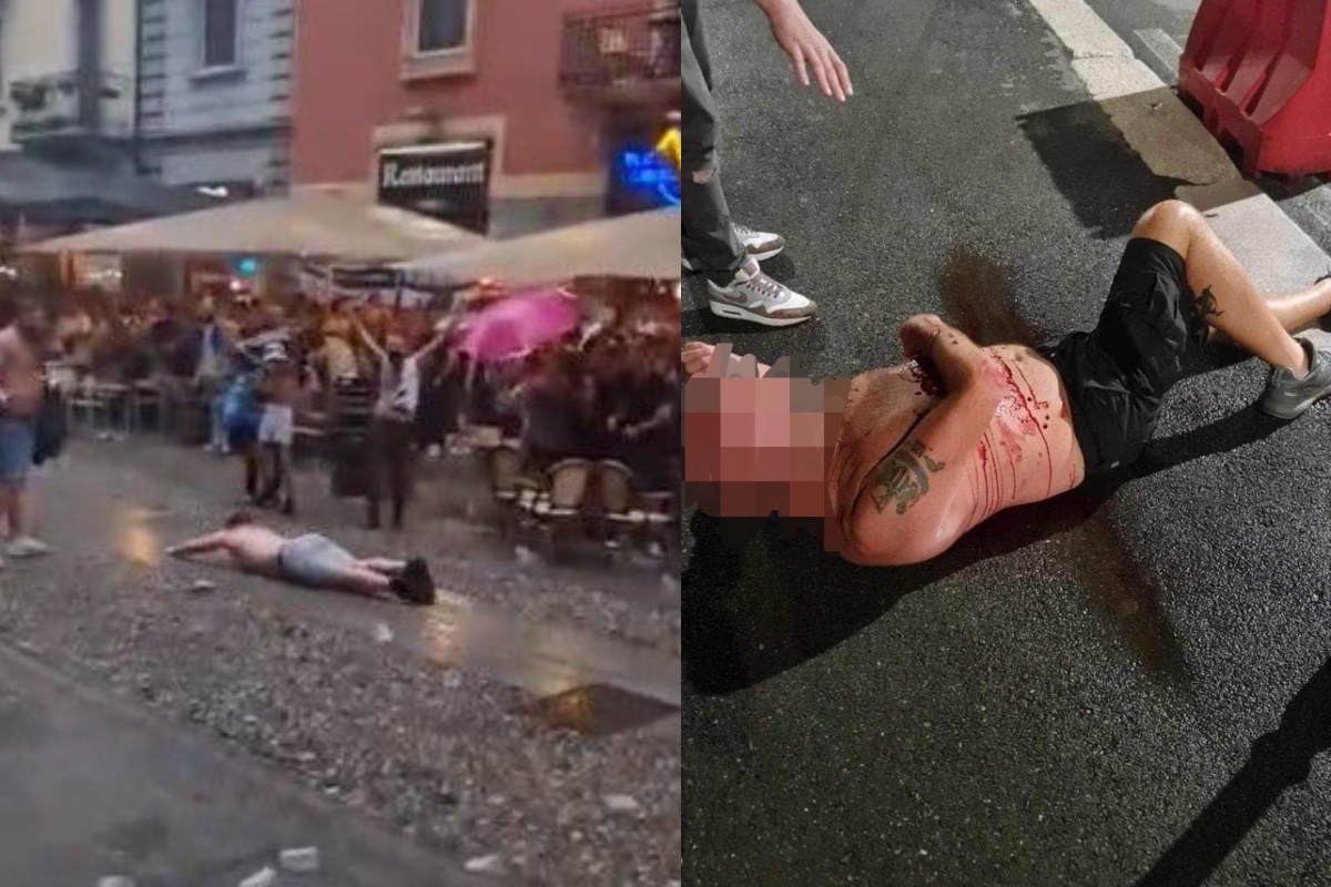 Σε μια φωτογραφία, ο οπαδός φαίνεται πως είναι ξαπλωμένος στο πάτωμα, με αίμα να στάζει στο σώμα του, ενώ σε μια άλλη είναι όρθιος, ακόμα αιμόφυρτος αλλά λαμβάνει θεραπεία από γιατρούς.