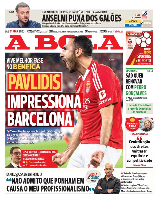 Με πρωτοσέλιδο της “A Bola”, οι Πορτογάλοι αποθεώνουν τον Παυλίδη για τις πρόσφατες εμφανίσεις του.: