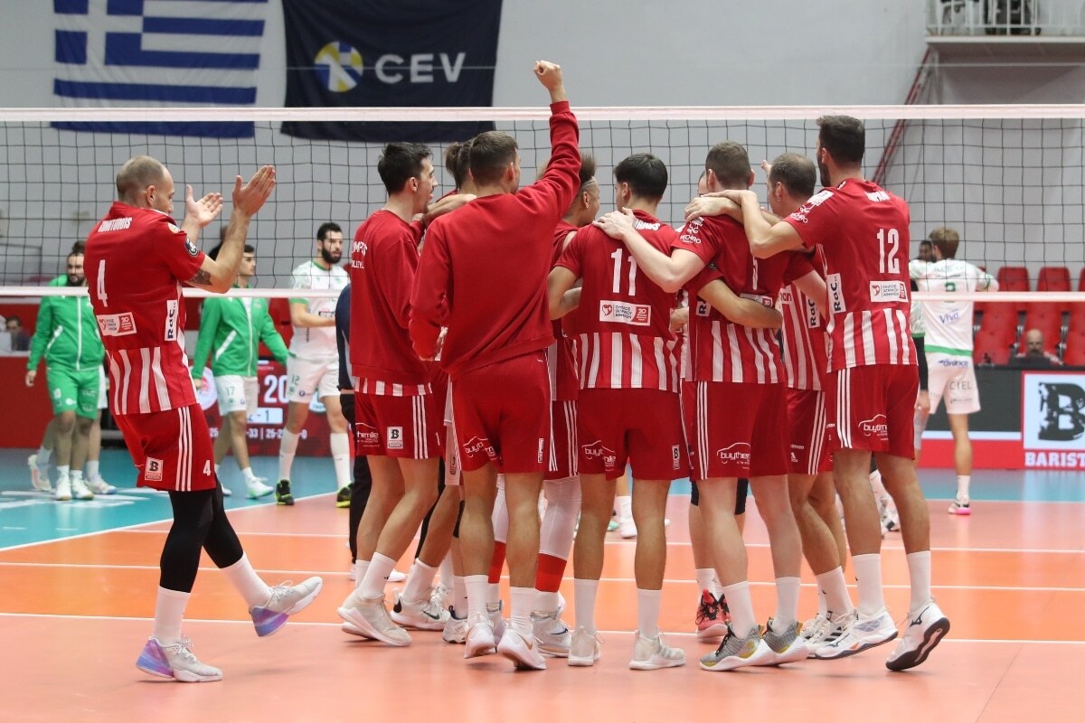 Οι «ερυθρόλευκοι» επικράτησαν με 3-1 σετ, στο κεκλεισμένων των θυρών ντέρμπι της 8ης αγωνιστικής του πρωταθλήματος, εξαργυρώνοντας την κυριαρχία τους στο σερβίς, καθώς μέτρησαν συνολικά 12 άσους, ενώ έκαναν δύσκολη τη ζωή των αντιπάλων στην υποδοχή.