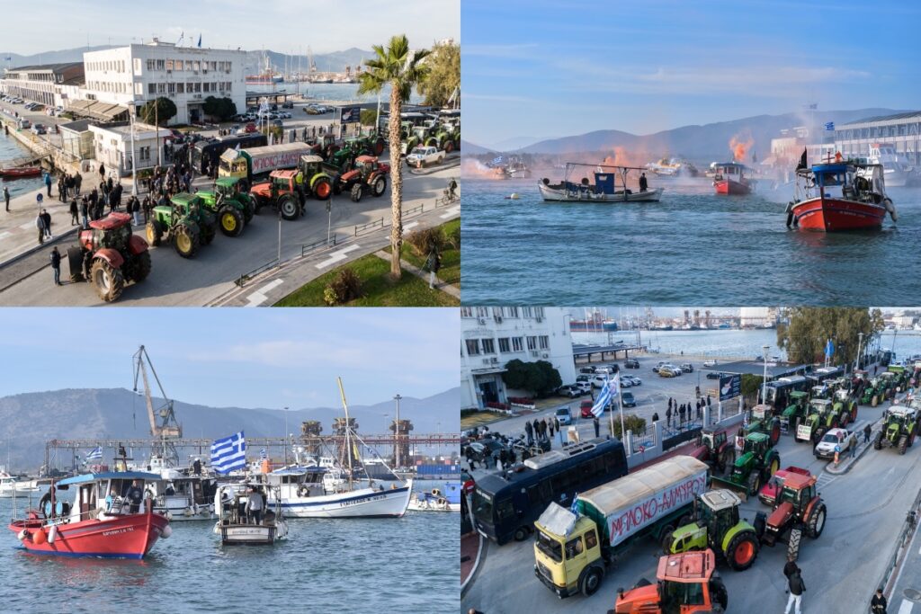 Αγρότες: Από στεριά και θάλασσα αποκλεισμένο το λιμάνι του Βόλου - Με βάρκες και καπνογόνα οι ψαράδες [Εικόνες-Βίντεο]