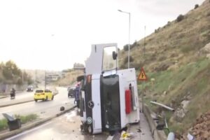 Νεκρός ο οδηγός του φορτηγού που ανατράπηκε σε παράδρομο της Ιονίας Οδού