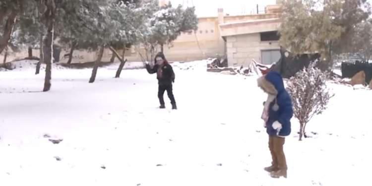 Παιδιά στο κατεστραμμένο Χαλέπι παίζουν χιονοπόλεμο [βίντεο]