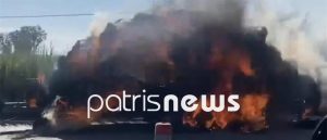 Πάτρα: Φωτιά σε αγροτικό που μετέφερε σανό στην Εθνική οδό Πατρών - Πύργου [εικόνες]