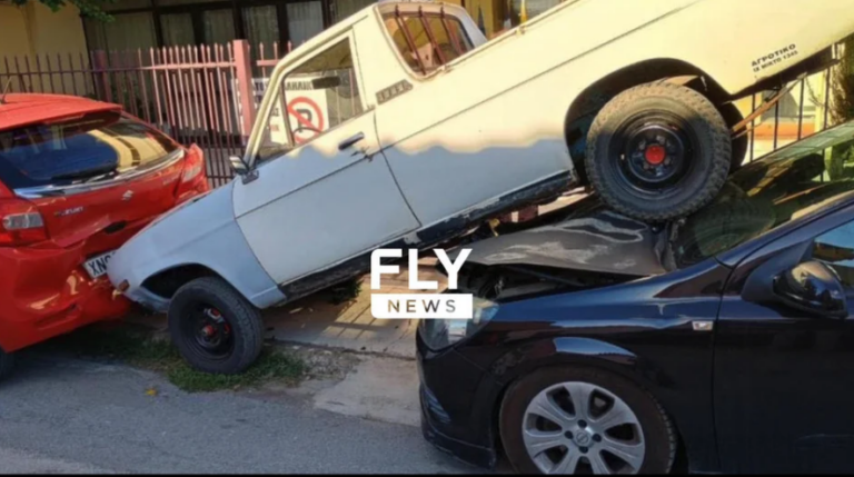 Σπάρτη: Αγροτικό «καβάλησε» ένα σταθμευμένο αυτοκίνητο [εικόνες]