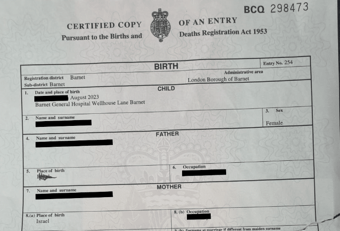 Βρετανία: Διέγραψαν τη λέξη Ισραήλ από πιστοποιητικό γέννησης – Ξεκίνησαν έρευνα οι αρχές
