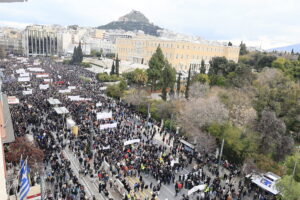 Reuters: Εκατοντάδες χιλιάδες διαδηλώνουν στην Ελλάδα για το σιδηροδρομικό δυστύχημα στα Τέμπη