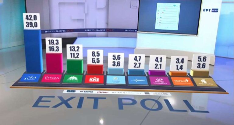 Εκλογές 2023-exit poll: Αυτοδύναμη με ιστορική διαφορά η ΝΔ - Οι Σπαρτιάτες και το θρίλερ με τα 4 κόμματα -Όλα τα ποσοστά