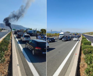 Εθνική Αθηνών – Κορίνθου: Διακοπή κυκλοφορίας λόγω φωτιάς σε αυτοκίνητο
