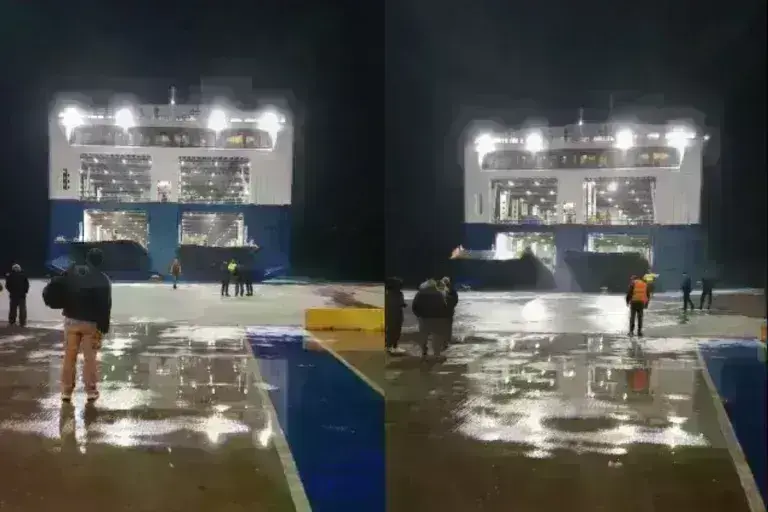 Σαντορίνη: Η τιτάνια προσπάθεια του Blue Star να «δέσει» στο λιμάνι [βίντεο]