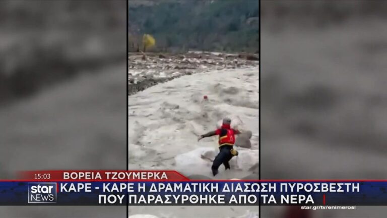 Τζουμέρκα: Δείτε σε βίντεο τη δραματική διάσωση πυροσβέστη στο ποτάμι