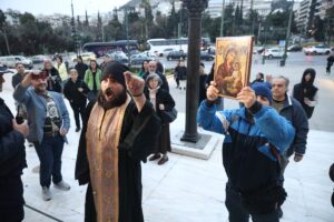 Μικροένταση στην πλατεία Συντάγματος με διαδηλωτές να απωθούν κουκουλοφόρους