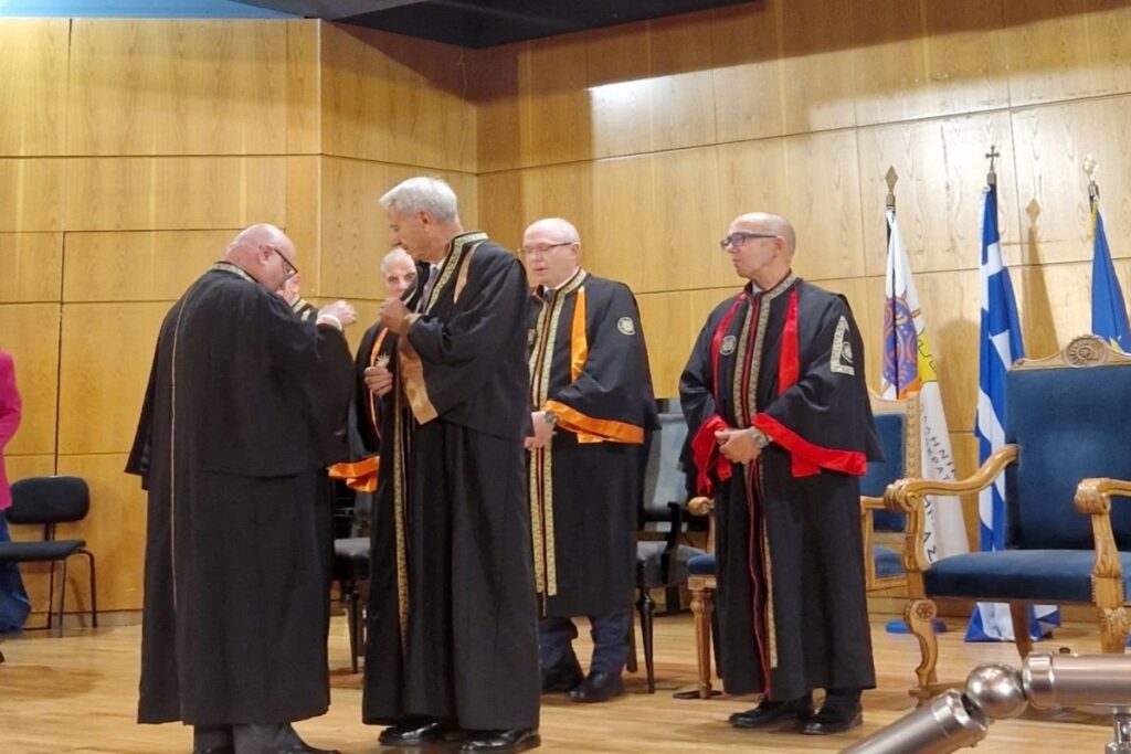 Επίτιμος Διδάκτορας του Τμήματος Βιοϊατρικών Επιστημών του Διεθνούς Πανεπιστημίου της Ελλάδος, ο Πρόεδρος του Ομίλου Ιατρικού Αθηνών, Δρ. Γεώργιος Β. Αποστολόπουλος