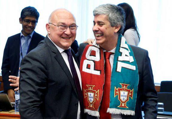 Με κασκόλ της εθνικής του ομάδας εμφανίστηκε στο Eurogroup ο Πορτογάλος ΥΠΟΙΚ