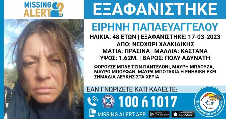 Συναγερμός για την εξαφάνιση 48χρονης από τη Χαλκιδική