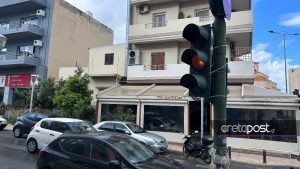 Κρήτη: Φανάρι είναι στραμμένο στο πεζοδρόμιο – Το στερέωσαν με tire up