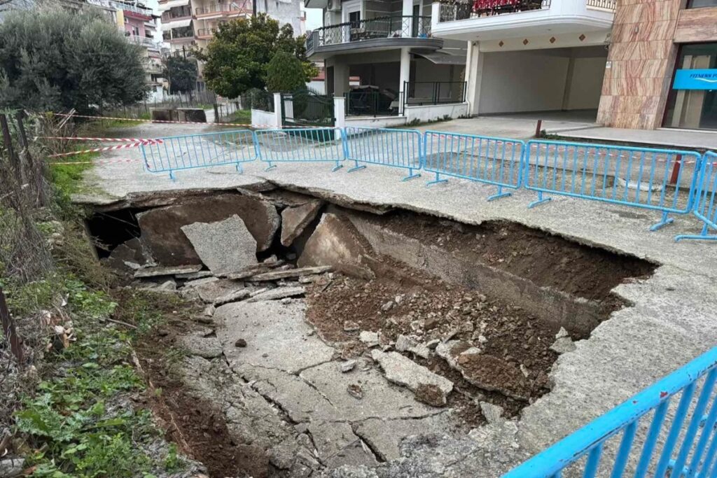 Γιαννιτσά: Άνοιξε τρύπα σε δρόμο μήκους 10 μέτρων - Από κάτω περνάει χείμαρρος [Εικόνες]