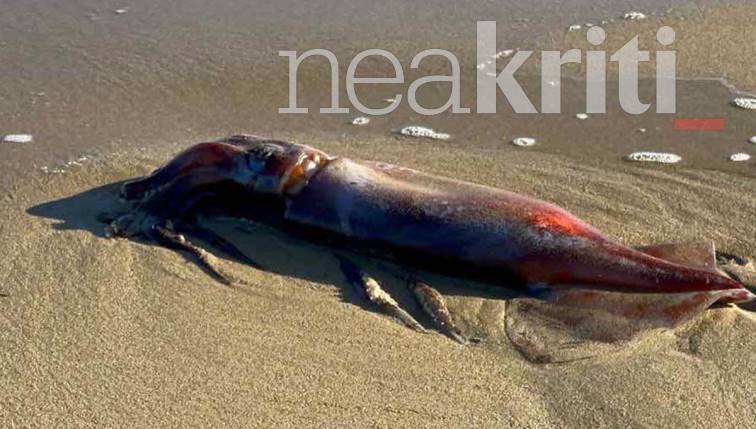 Ένα καλαμάρι-γίγας ξέβρασε η θάλασσα σε παραλία της Κρήτης [Φωτογραφίες]