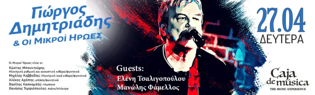 Ο ΓΙΩΡΓΟΣ ΔΗΜΗΤΡΙΑΔΗΣ & ΟΙ ΜΙΚΡΟΙ ΗΡΩΕΣ Στο Caja De Musica την Δευτέρα 27/4/2026