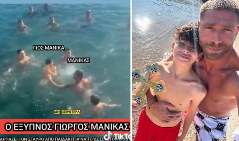 Θεοφάνεια: Σάλος με το μακροβούτι του Μανίκα για να δώσει τον Σταυρό στον γιο του [βίντεο]
