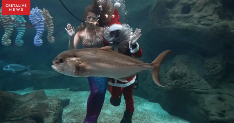 Ο Άγιος Βασίλης και η Γοργόνα έφτασαν στο… ενυδρείο Κρήτης [Βίντεο]