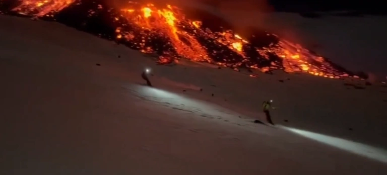 Ηφαίστειο της Αίτνας: Τα εντυπωσιακά βίντεο με τους σκιέρ που «κόβουν» την ανάσα - Κάνουν σνόουμπορντ δίπλα στη λάβα [βίντεο]