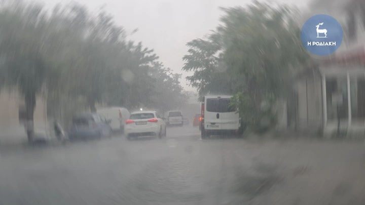 Κακοκαιρία Atena: Ανελέητο σφυροκόπημα στη Ρόδο- Ισχυρή νεροποντή στο κέντρο της πόλης