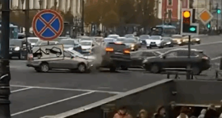 Ρωσία: Καρέ-καρέ το απίστευτο τροχαίο στην Αγία Πετρούπολη – Καραμπόλα με 8 οχήματα! [βίντεο]