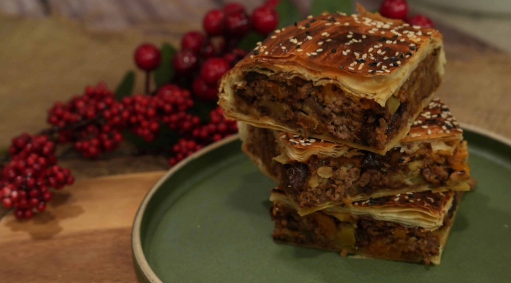 Εορταστική κιμαδόπιτα με μοσχαρίσιο κιμά και σταφίδες