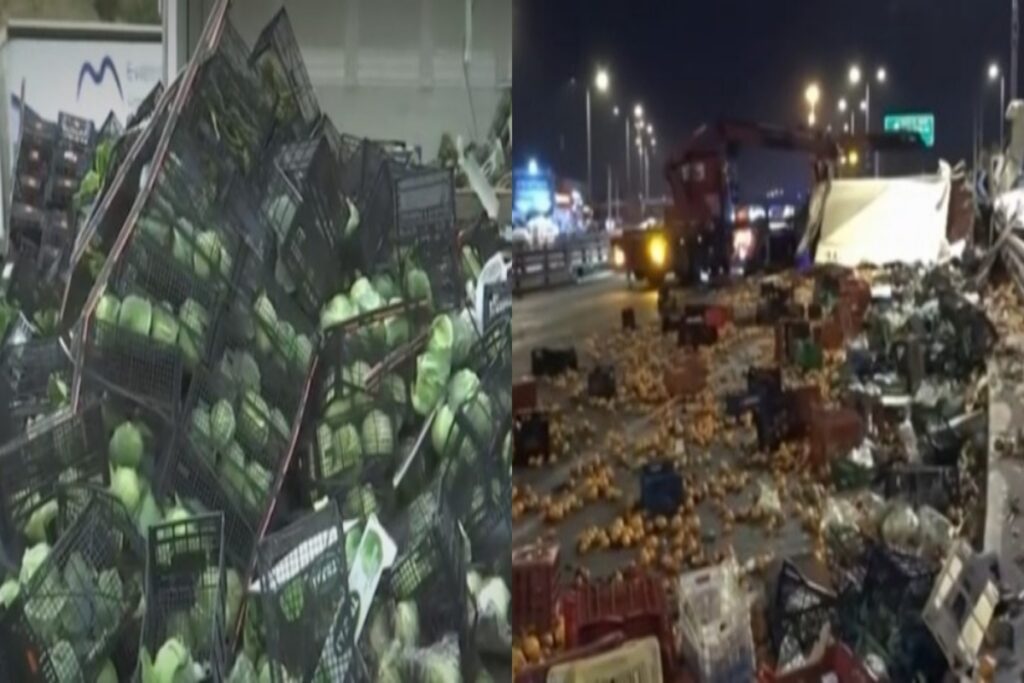 Τροχαίο στην Αθηνών-Κορίνθου: Ο οδηγός με τα λάχανα είχε ίδιο ατύχημα στον Κηφισό... με πορτοκάλια [Βίντεο]