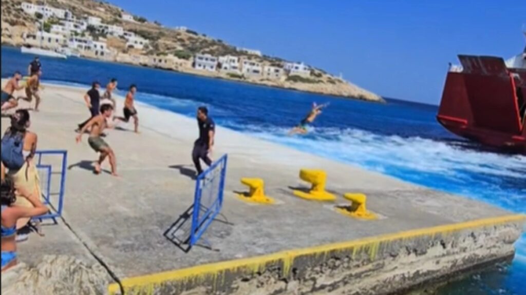 Σίκινος: Λιμενικοί προσπαθούν να σταματήσουν τους «απονεριστές» που βουτούν πίσω από τα πλοία που φεύγουν