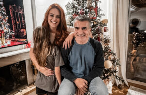 Η Μαριέττα Χρουσαλά φωτογραφίζεται μπροστά στο χριστουγεννιάτικο δέντρο στο σπίτι της