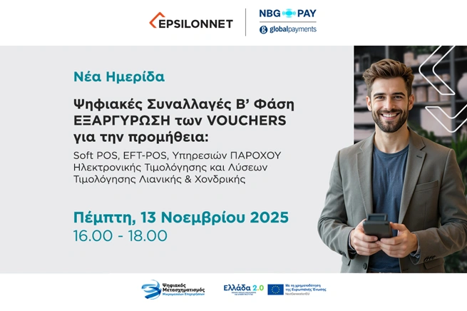 Διαδικτυακή Ημερίδα από την NBG Pay και τον Όμιλο EPSILONNET για την εξαργύρωση ψηφιακών vouchers