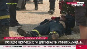 Νέα Πέραμος: Πυροσβέστης λιποθύμησε από την εξάντληση και την αποπνικτική ατμόσφαιρα